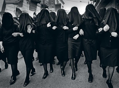 Tomemos cualquier imagen de las 17 de Cristina García Rodero que Pepe nos ha seleccionado. Yo lo hago mentalmente con la de la confesión «pública» en plena calle, pero Vds. háganlo con la que más les guste.