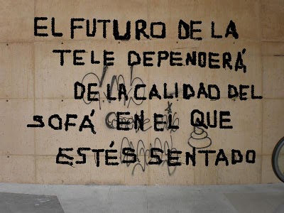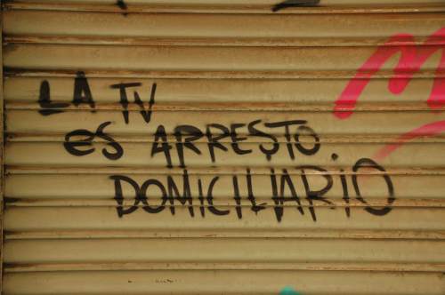 La tele en la pared I Nov 21, 2010 | Blog | 1 He recogido algunos mensajes gráficos y textuales del “arte callejero”. Ahí van. Vean televisión, no la consuman o serán consumidos por ella.