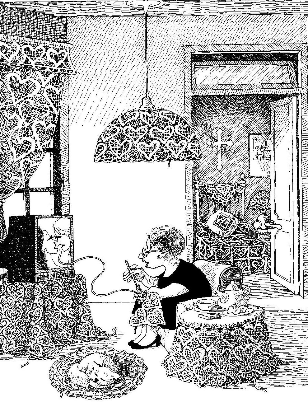 No se puede decir mejor, José Luis. Es un chiste de largo recorrido: cómo ese hilo que «sale» del televisor, sirve para tejer los sueños del telespectador que acaban impregnándolo todo. Y no es sólo «amor» lo que destila el aparatito al medioambiente….