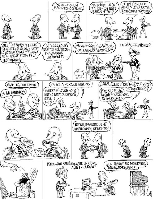 Me ha encantado la idea y el desarrollo gráfico de Quino. La primera línea, las tres primeras viñetas… sorpendentes.